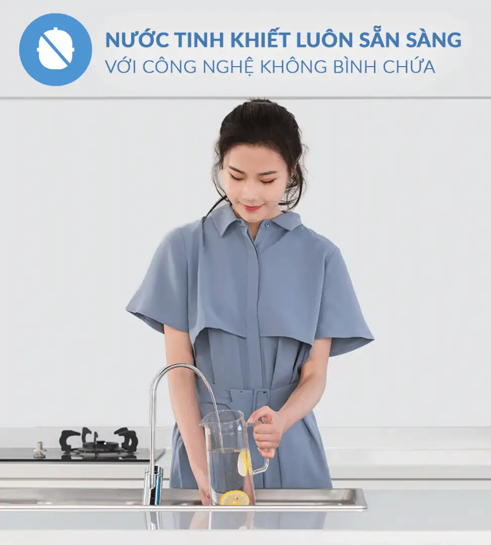 Công suất lọc lớn nhất lên tới 1.500 ml/ phút, nước được lọc trực tiếp ngay khi mở vòi đảm bảo luôn tươi mới và đáp ứng nhu cầu sử dụng nước liên tục của đại gia đình.